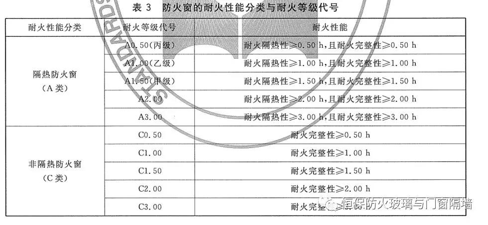 備注:根據(jù)國家標準《防火窗》GB16809-2008,甲級防火窗的耐火性能分類與耐火等級的規(guī)定:耐火隔熱性≥1.50h,且耐火完整性≥1.50h的耐火等級代號是A1.50(甲級);耐火完整性≥1.50h的耐火等級代號是C1.50。所以我們常說的甲級防火窗是指耐火隔熱性≥1.50h,且耐火完整性≥1.50h的防火窗。