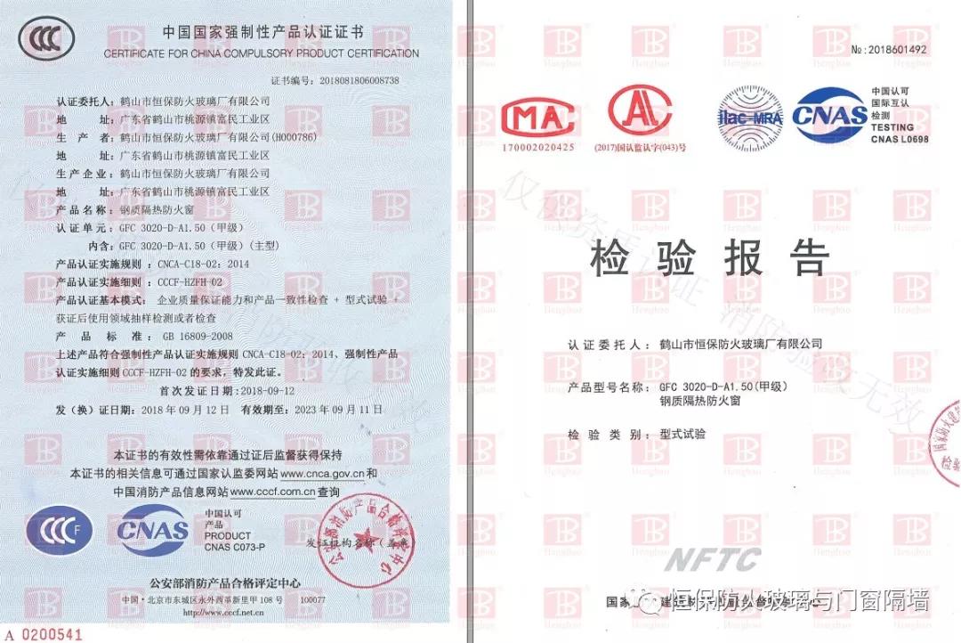 鶴山恒保經(jīng)過(guò)多年努力,終于解決這一行業(yè)難題:成功通過(guò)超大甲級(jí)防火窗國(guó)家CCC認(rèn)證,3000mmX2000mm超大尺寸版面,整窗都能滿足防火完整性和防火隔熱性1.5小時(shí)的要求,既符合建筑設(shè)計(jì)防火規(guī)范的要求,又具有窗的通透性,美觀實(shí)用。完美解決了地鐵高鐵消防控制室超大甲級(jí)防火觀察窗合法化的問(wèn)題!