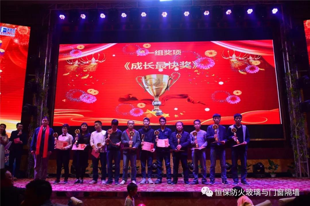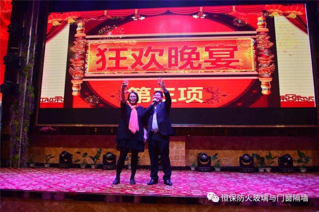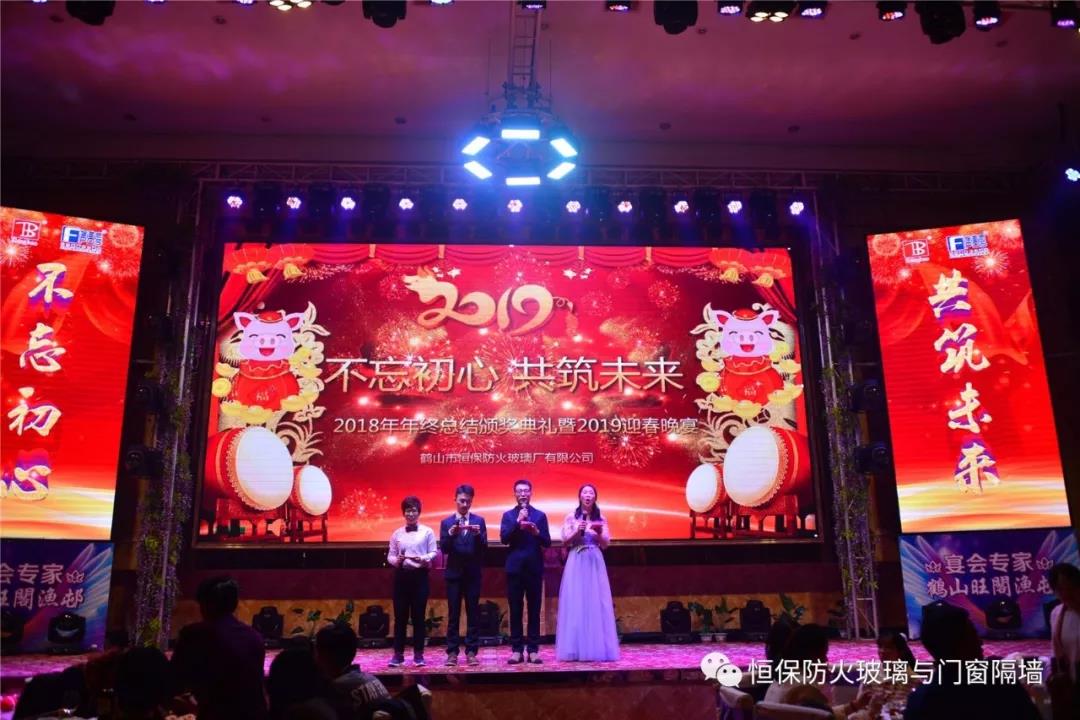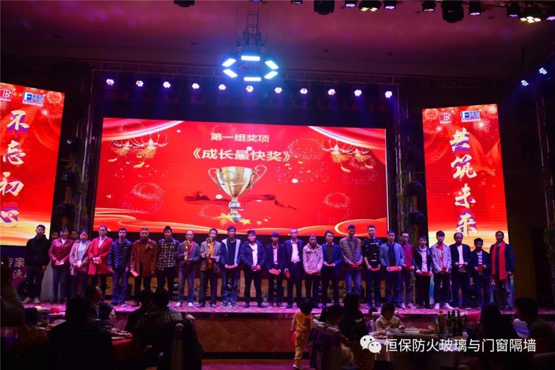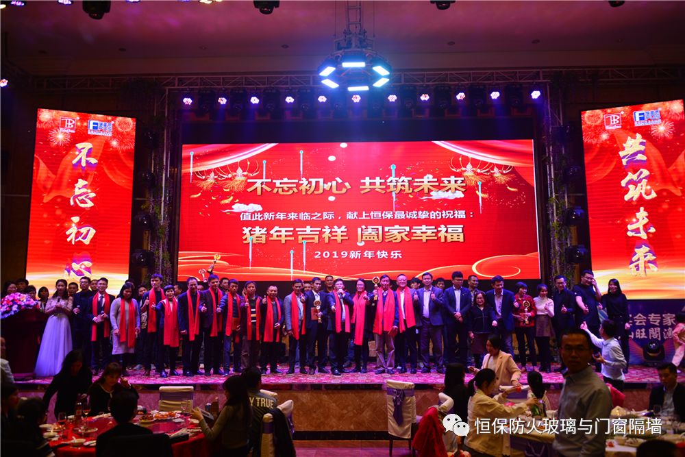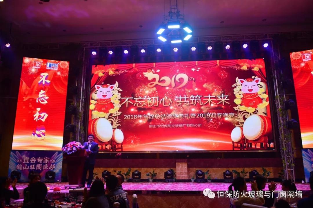 19:30分,恒保年會在鼓舞飛揚中拉開了帷幕,首先是恒??偨?jīng)理陳沃林先生做年終致辭,陳總回顧了2018年所取得的成績與不足,并提出了2019年恒保要全力以赴,不忘初心,繼續(xù)奮斗,再創(chuàng)佳績的戰(zhàn)略方針。2018年是恒保跨越發(fā)展的一年。全體恒保家人,團結(jié)一心,艱苦奮斗,全力實現(xiàn)了公司既定的年度目標(biāo),同比各項重要指標(biāo)增長逾80%。2018年我們大力引進新設(shè)備,開發(fā)新產(chǎn)品10多項,產(chǎn)品通過國家檢測20多項 ,至此,恒保出品已擁有37個3C認證,158份檢驗報告,成為行業(yè)內(nèi)公認通過國家檢驗、認證最多的防火玻璃門窗企業(yè);2018年在行業(yè)各類權(quán)威獎項評比中,榮獲“全國鋁門窗幕墻展 年度星品獎”、榮獲“新玻網(wǎng) 門窗玻璃十強企業(yè)”、陳沃林總經(jīng)理榮獲鶴山市工商聯(lián)系統(tǒng)“工匠之星”稱號、陳沃林總經(jīng)理榮獲第五屆中國玻璃行業(yè)“玻璃工匠”稱號、榮獲第三屆建筑門窗金軒獎“最具創(chuàng)新力配套產(chǎn)品”、榮獲第三屆建筑門窗金軒獎“最具發(fā)展?jié)摿ζ髽I(yè)”、榮獲中國門窗幕墻行業(yè)“科技進步推動獎”等十多項獎項。2019年我們將持續(xù)優(yōu)化各部門管理,提高員工工作技能、提高生產(chǎn)管理水平、提高生產(chǎn)效率、提高綜合管理能力,減少物料損耗,減少出錯率。加強精密型材、新型防火門窗的開發(fā),滿足不同客戶的需求。2019年恒保上下一心、同心協(xié)力、不忘初心,共筑未來,為實現(xiàn)中國平安夢、世界平安夢繼續(xù)奮斗!