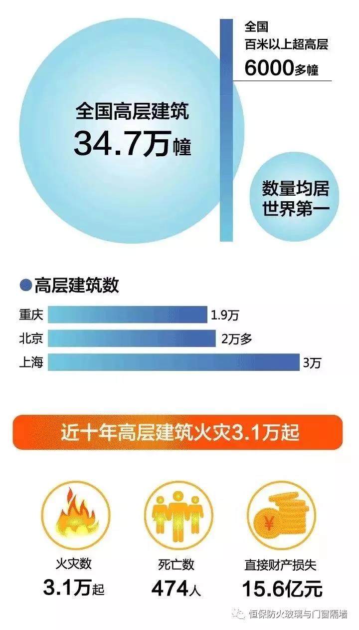 公安部消防局通報(bào)了中國(guó)高層建筑火災(zāi)的數(shù)據(jù)。數(shù)據(jù)顯示,全國(guó)擁有8層以上、超過24米的高層建筑34.7萬幢,百米以上高層6000多幢,數(shù)量均居世界前位。
